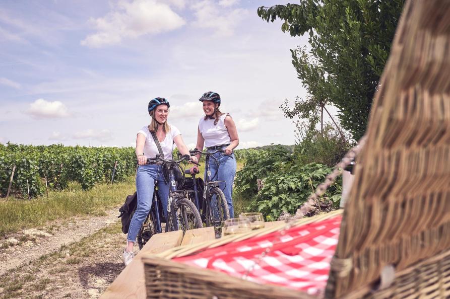 De dag begint met een goed ontbijt. Bij het Relais hoort ook een champagnehuis en daar ga je als eerste kennis mee maken. Je begint met een tocht per e-bike door de wijngaarden, zo leuk om op die manier de wijngaarden te ontdekken! Je maakt een stop en dan staat er een picknick voor je klaar met een glas champagne. De tocht eindigt bij het champagnehuis van het relais waar je een rondleiding krijgt met uitleg en je proeft hun champagnes.