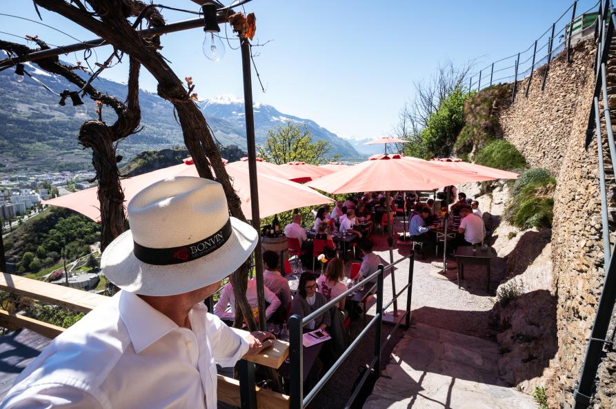 De dag begint met een uitgebreid ontbijt. Een goede start want vandaag maak je een indrukwekkende wandeling door de wijngaarden waarbij je goede (berg)wandelschoenen nodig hebt. Het startpunt is Les Celliers de Sion, een wijncentrum waar de wijnen van Maison Bonvin 1858 en Varone centraal staan. De architectuur van het moderne pand is volledig aangepast aan het landschap. Er wordt een uitgebreide uitleg gegeven en je proeft 5 van hun wijnen. Vervolgens maak je een 2 uur durende wandeling door de wijngaarden waarbij je onder de indruk raakt van de steile berghellingen en krijg je een beeld hoe intensief het onderhoud van de wijngaarden is. Halverwege maak je een stop bij een restaurant met terras met indrukwekkend uitzicht over de wijnbergen en het dal en geniet je niet alleen van het panorama maar ook van een regionale 3-gangen lunch waar je zelf de wijn bij uitkiest.