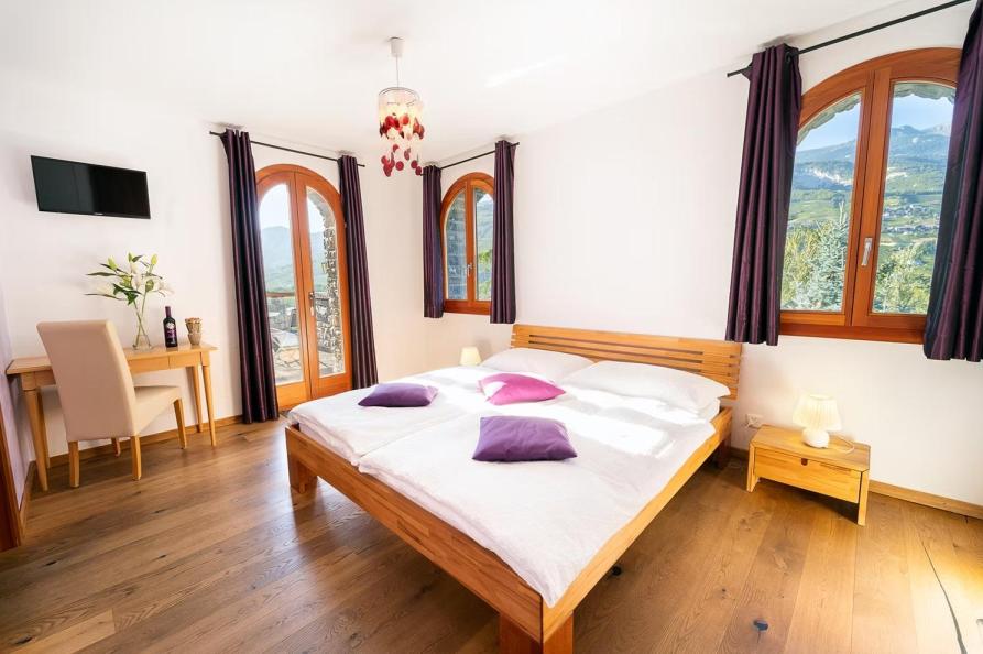Wat is dit een unieke plek om te verblijven! Hoog gelegen met een geweldig uitzicht, verblijf je hier in een voormalige watertoren uit 1949. Die later is uitgebreid tot een residence en in 2006 werd de residence en de wijngaarden overgenomen door de huidige eigenaren die de residence uiteindelijk omtoverden tot een fraaie B&B met wijngaarden, fruitbomen en diverse andere regionale producten. Je kunt hier niet alleen hun wijnen proeven maar in de bijbehorende winkel zijn alle producten ook te koop, inclusief de zelfgemaakte jam en vruchtensappen. De B&B bestaat uit 5 kamers, elk verschillend en ’s ochtends is er een uitgebreid ontbijtbuffet met verse producten. Buiten zijn diverse zitjes waar je geniet van het uitzicht. Een plek waar je gewoon niet meer weg wilt!